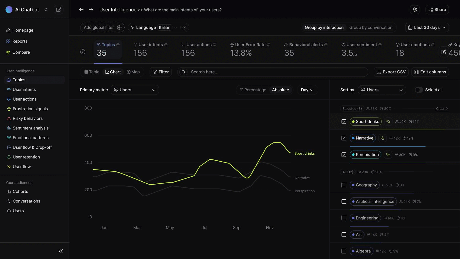 Nebuly AI is a user experience platform for LLMs, designed to clearly and instantly assess the quality of user interactions. It provides both qualitative and quantitative insights, offering a complete overview of discussed topics, user searches, and overall satisfaction.